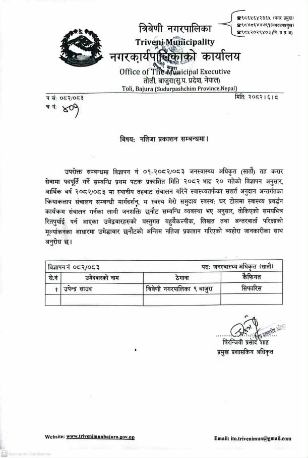 » नतिजा प्रकाशन सम्बन्धमा ।