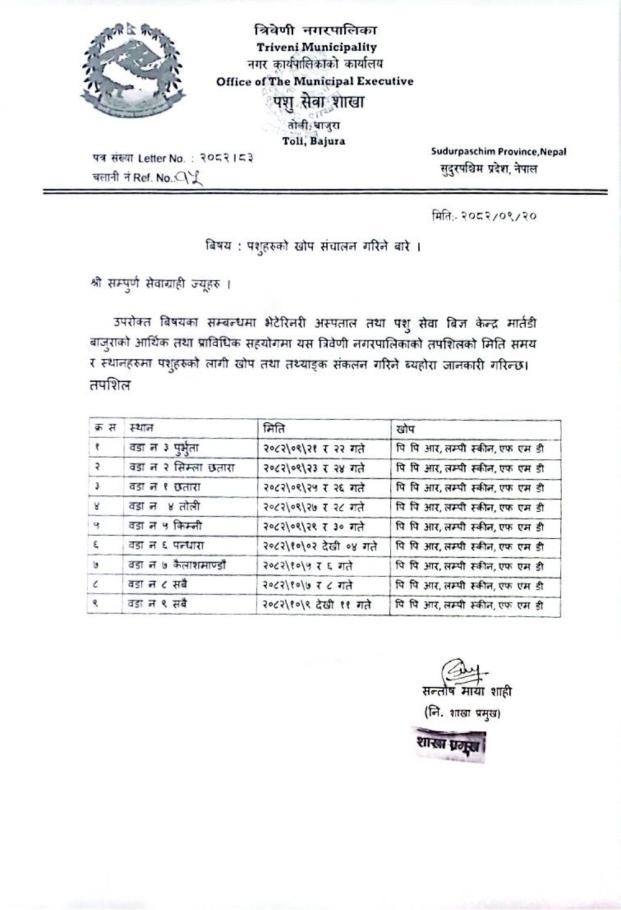 पशुहरुको खोप संञ्चालन गरिने सम्बन्धि सुचना ।