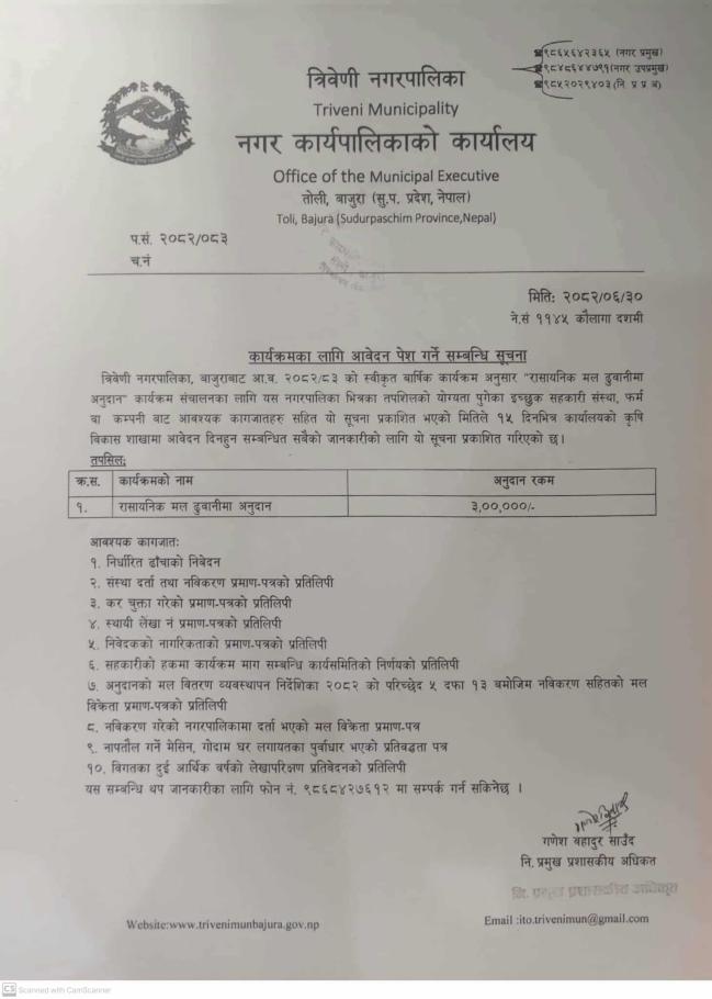 कार्यक्रमका लागि आवेदन पेश गर्ने सम्बन्धि सूचना ।